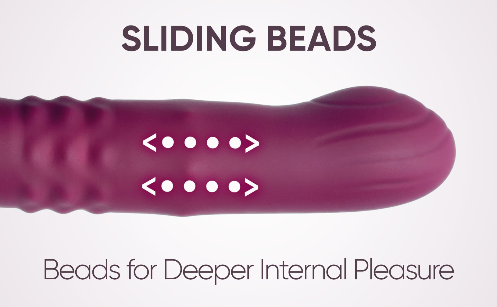 Sculpted come-hither strokes combine with deep internal vibration and rhythmic clitoral tapping, while sliding beads glide in lifelike motion—seamless pleasure, inside and out.