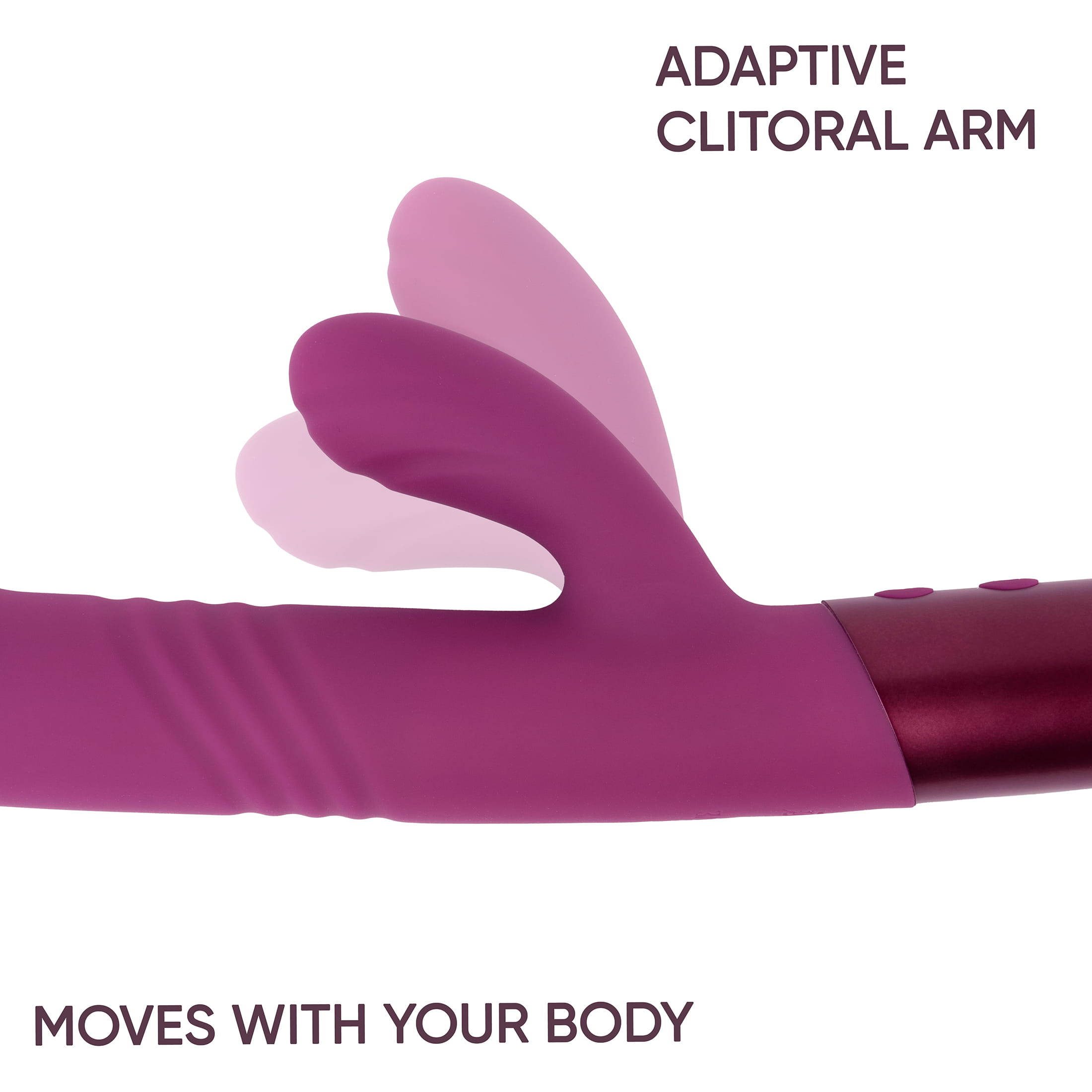 The internal shaft delivers rhythmic thrusting with added vibration for satisfying G-spot stimulation, while the flexible outer arm provides steady clitoral vibration that stays comfortably in place during use.